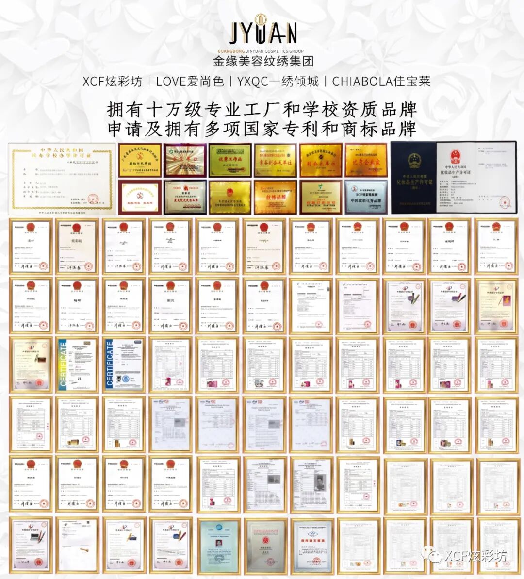 XCF已经过了24个年头,专业专注美容纹绣行业,生产安全高效产品,研发zhuanli实效技术,传授落地美丽技法,做行业标准化、系统化培训「领潮者」 不追求数量,只追求质量!24年始终如一秉承“甘为勤士献绝艺,不畏得失与利弊”的教学理念,一心一意帮助美业学子提升技术,为爱美人士提供实效的技术 开春密训营全程干货满满,XCF明星导师手把手教学,在线解答疑难 户外写生放下日常的繁琐,感受春天的生机,身心放松提升艺术审美 今天,XCF炫彩坊仍然在美业的一线奋斗着! 24年品牌历史享誉全球,发明zhuanli技术领潮行业,美博会现场强势吸睛,观摩学习的美业家人络绎不绝 现场接到《崛起中国》央视栏目组邀请采访炫彩坊品牌创始人 张玉萍 女士 ,为献礼建党100周年特别策划专题。 XCF明星团队倾力展现核心zhuanli技术,用真心服务客户,用细致专业的手法,毫无保留“用简单方法,创臻美效果”,为共同热爱美丽事业的家人们,提供落地实效的技法! 美丽作品·与君共赏 『XCF炫彩坊』 勇于接受每一位消费者的检阅 行动不只315,一年更要365! 任何时候,『XCF炫彩坊』承诺: 销售专业正规合法产品,保障客户利益。 教授专业系统核心技术,保障客户利益。 XCF与您一起维护好自身的合法权益: 深爱这个行业,那是不计得失,执着深沉的爱! 致力于推动行业合法化、正规化、标准化,XCF以德立身,以身立教,身先士卒主要品牌产品均通过国家质检部门检测保障,特色产品均有国家备案护航,拳头产品均拥有国家发明zhuanli保护 24年稳坐行业销售宝座,品牌产品畅销国内外, 经久不衰,深受青睐。“品为企业之灵魂,质为企业之根本”是我们一直秉持的经营理念,专业产品,zhuanli品牌,值得信赖! 24年品牌历史,拥有雄厚的技术、产品、服务等综合实力。我们有能力、有信心为广大国内外广大客户提供优质高效的售前、售中、售后服务。 XCF炫彩坊一直努力,希望通过品牌的影响力,将更多好的技术和优质的产品传播,不断助力纹绣在中国的有力发展! XCF炫彩坊一直坚持在美业前线,坚守自己原则,从不随波逐流、哗众取宠,务实求效推动行业健康发展,走出自己的美业道路! 世界纹绣看中国,中国纹绣炫彩坊 XCF炫彩坊·创造美·传播美·让天下人都美